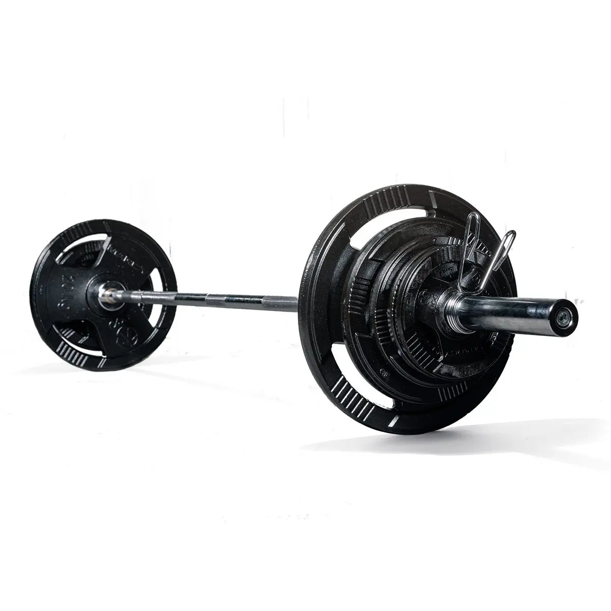 Rack adjusts to 8 heights and takes 6-ft or 7-ft barbell