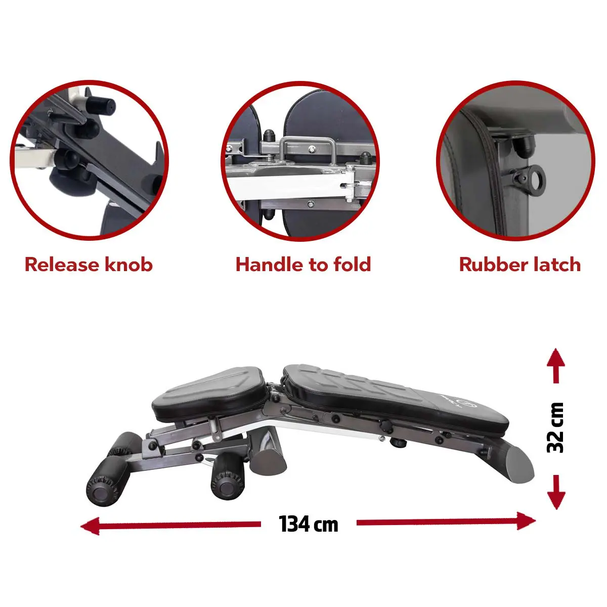 Quick release mechanism folds the bench in seconds