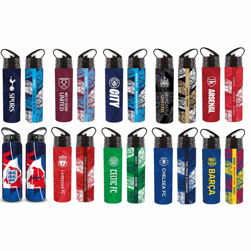 Available with numerous Team colours, this Alu Bottle is produced from 100% Aluminium, holding 750ml. It is designed withs your favourite teams name and badge down the side. Finalised with a twisted cap and non-slip spout. These bottles also contain an ergonomic handle to enable easy travel and movement.